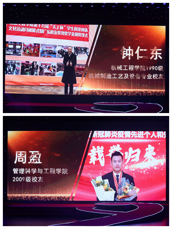 颁奖典礼上,黄永宜、第一届感动校园人物魏泽洋、孙芳城、北三楼栋的同学们、潘毅、付晓琼的母亲、陈运超、李志雄作为颁奖嘉宾依次为“感动校园人物”颁奖。