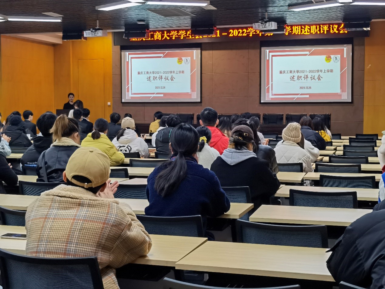 为深入学习贯彻习近平新时代中国特色社会主义思想,进一步贯彻落实校院学生会各项规章制度,组织动员广大学生骨干坚定跟党走、奋进新时代。12月24日,我校于南岸校区图书馆多功能厅举办重庆工商大学学生会2021-2022学年上学期述职评议会。学校党委学工部、团委领导,四川外国语大学主席团成员涂秋雨参与本次评议会,校院学生会学生骨干参加述职大会。