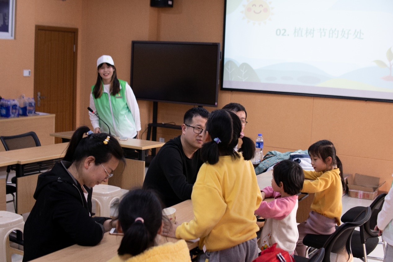 志愿者吴中梅同学通过PPT为社区的小朋友们讲解了植树节的由来、各个国家对植树节的称法、以及生态环保的相关知识,让小朋友们从小就树立环保意识。随后,还开展了有关植树节相关知识的竞答,社区的家长和小朋友积极参与,气氛热烈。