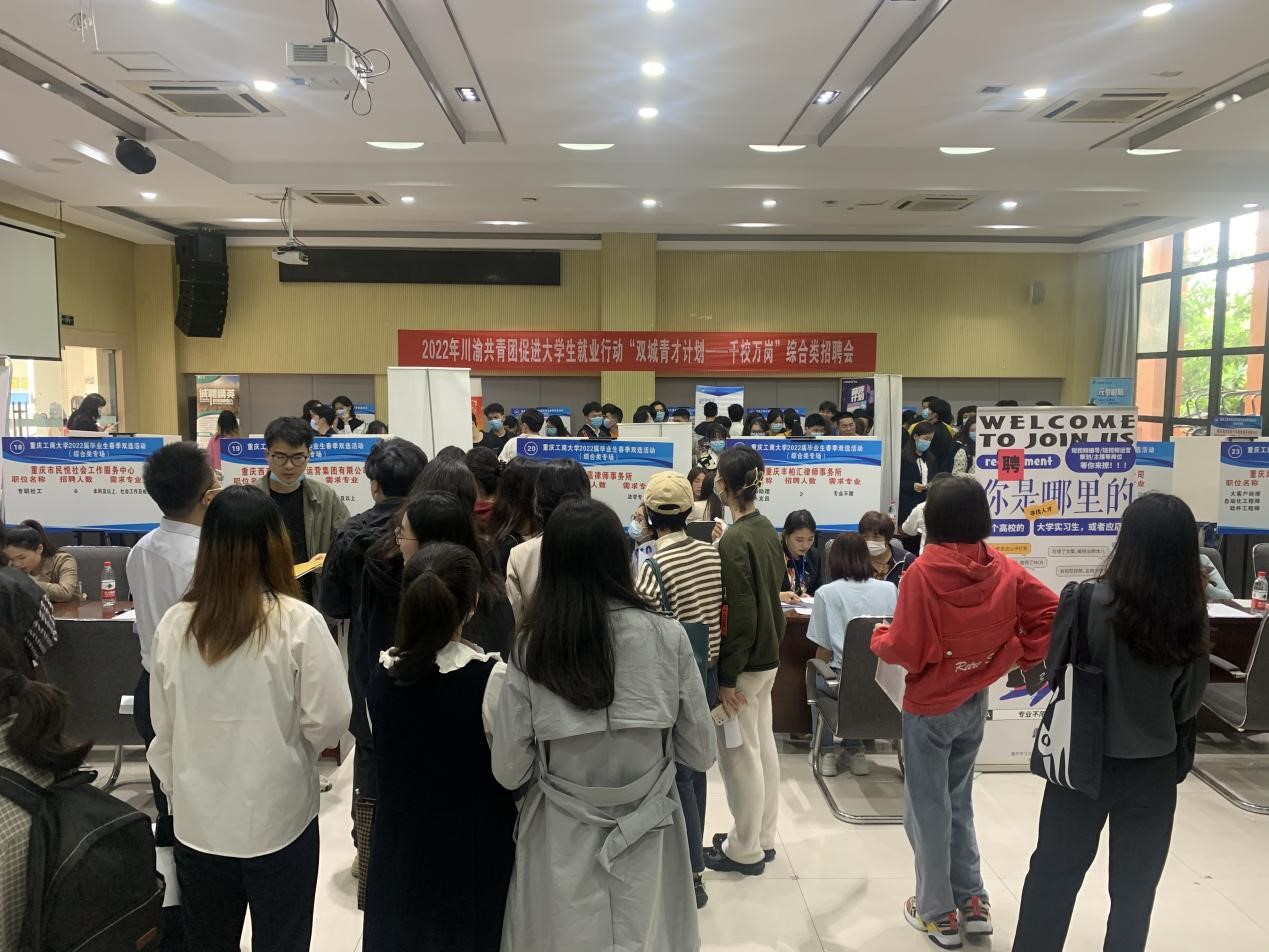 5月19日下午,由共青团重庆市委、重庆市教委、重庆市人力社保局、四川团省委联合主办,校团委、招生就业处承办,法学与社会学学院、2003网站太阳集团协办的2022年川渝共青团促进大学生就业行动“双城青才计划——千校万岗”综合类招聘会如期开展。