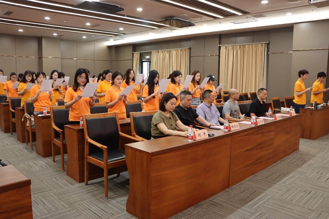 全体出征人员在主持人的带领下庄严承诺:“文道相彰,传习日新,勠力同心,踔厉奋进,全心全意为人民服务,用拼搏奋斗担起个人责任与社会责任,无畏实践检验,无惧时间检验,在实践锻造中不断增强青年人的志气、骨气、底气。”