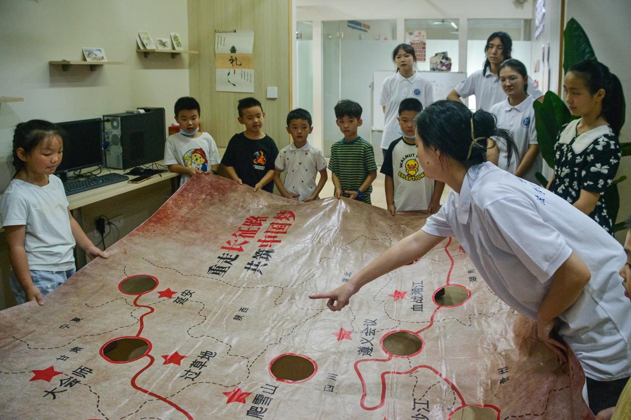 为在青少年群体中进一步宣讲党史这一最生动、最有说服力的教科书,7月8日,由青年普法志愿者服务队组建的理论宣讲团走进南岸区罗家坝社区“青少年之家”,面向少年儿童开展“赓续红色血脉,笃行报国之志”党史学习教育素质拓展活动,并进行国家安全观教育宣讲。志愿者从一首《七律·长征》引入,向孩子们讲述红军长征的艰苦历史,让孩子们感悟革命先辈的坚强意志和优良作风。为让少年儿童进一步深入感受红军万里长征的艰辛与不易,志愿者们模拟红军长征的情景,开展了送鸡毛信、投弹等一系列素质拓展活动,积极引导孩子们如何高效正确地克服困难、完成任务。最后,志愿者们向孩子们宣讲和平年代国家安全、国防安全的重要性,引导孩子们牢固树立正确的国家安全观。