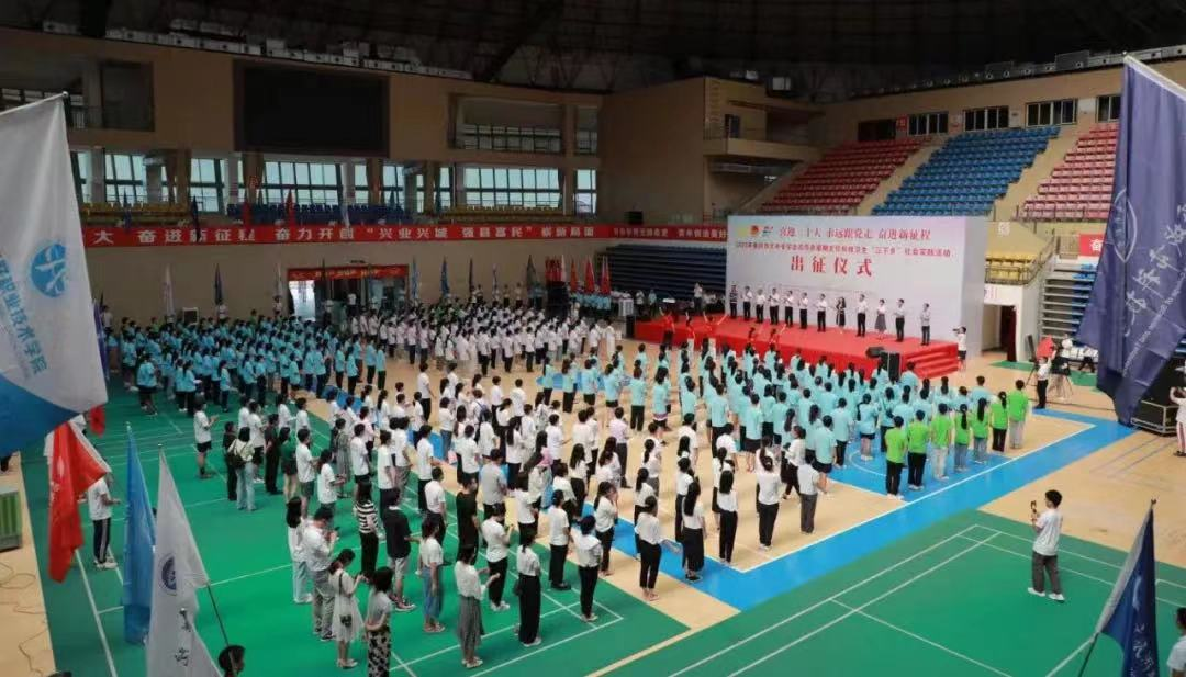 7月13日上午,由市委宣传部、市文明办、市教委、市水利局、市乡村振兴局、团市委、市学联、中共奉节县委、奉节县人民政府共同举办的“喜迎二十大、永远跟党走、奋进新征程”2022年重庆市暑期“三下乡”社会实践活动出征仪式在奉节县体育馆顺利举行。市委宣传部二级巡视员左图强,市乡村振兴局党组成员、副局长王仕杰,奉节县委书记张果,团市委副书记黄永宜出席活动,市教委、市水利局、奉节县、中国建设银行重庆市分行相关负责人,“三下乡”重点团队指导教师及学生代表参加活动。