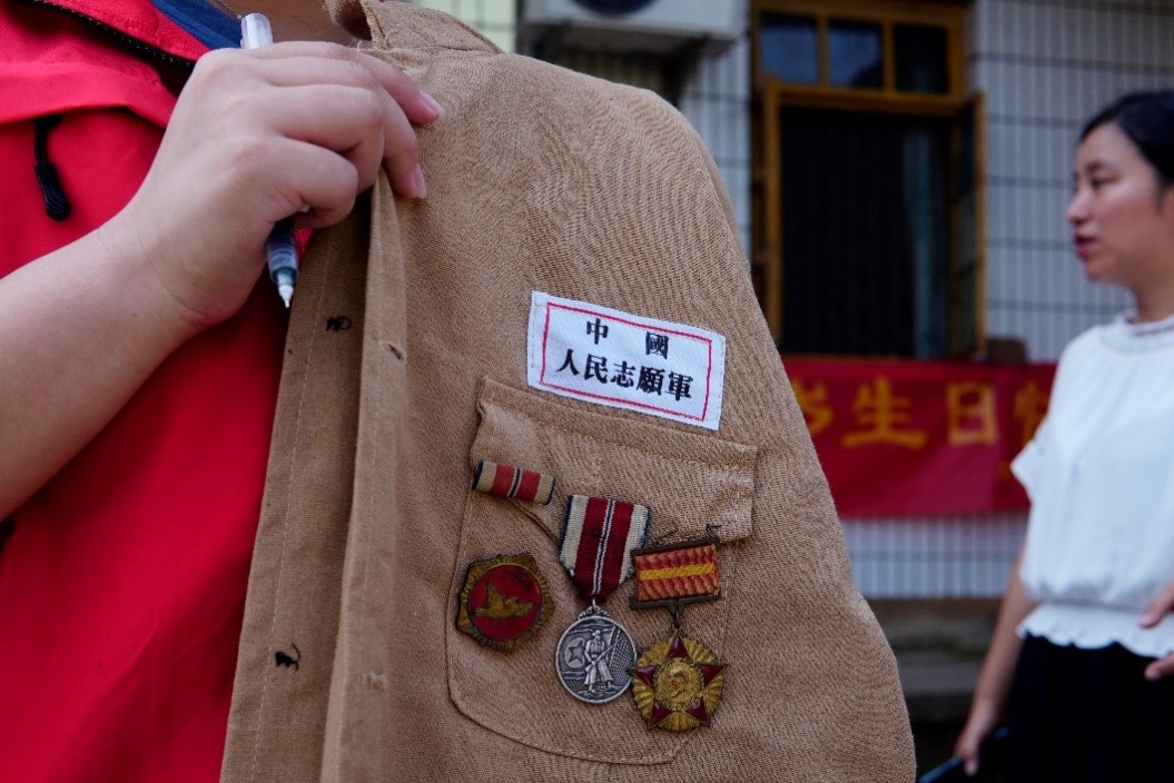在临别之际,康绍舟老人穿上中国人民志愿军军装,带上熠熠生辉的勋章与观察团合影留念。在那一刻,观察团成员的眼眶湿润了。伟大抗美援朝精神是志愿军将士用鲜血和生命铸就的永恒精神丰碑,是弥足珍贵的精神财富。作为新时代青年,观察团成员在经历了这次走访抗美援朝老英雄的精神洗礼后,将会深刻铭记“生逢其时,重任在肩”的责任与担当。