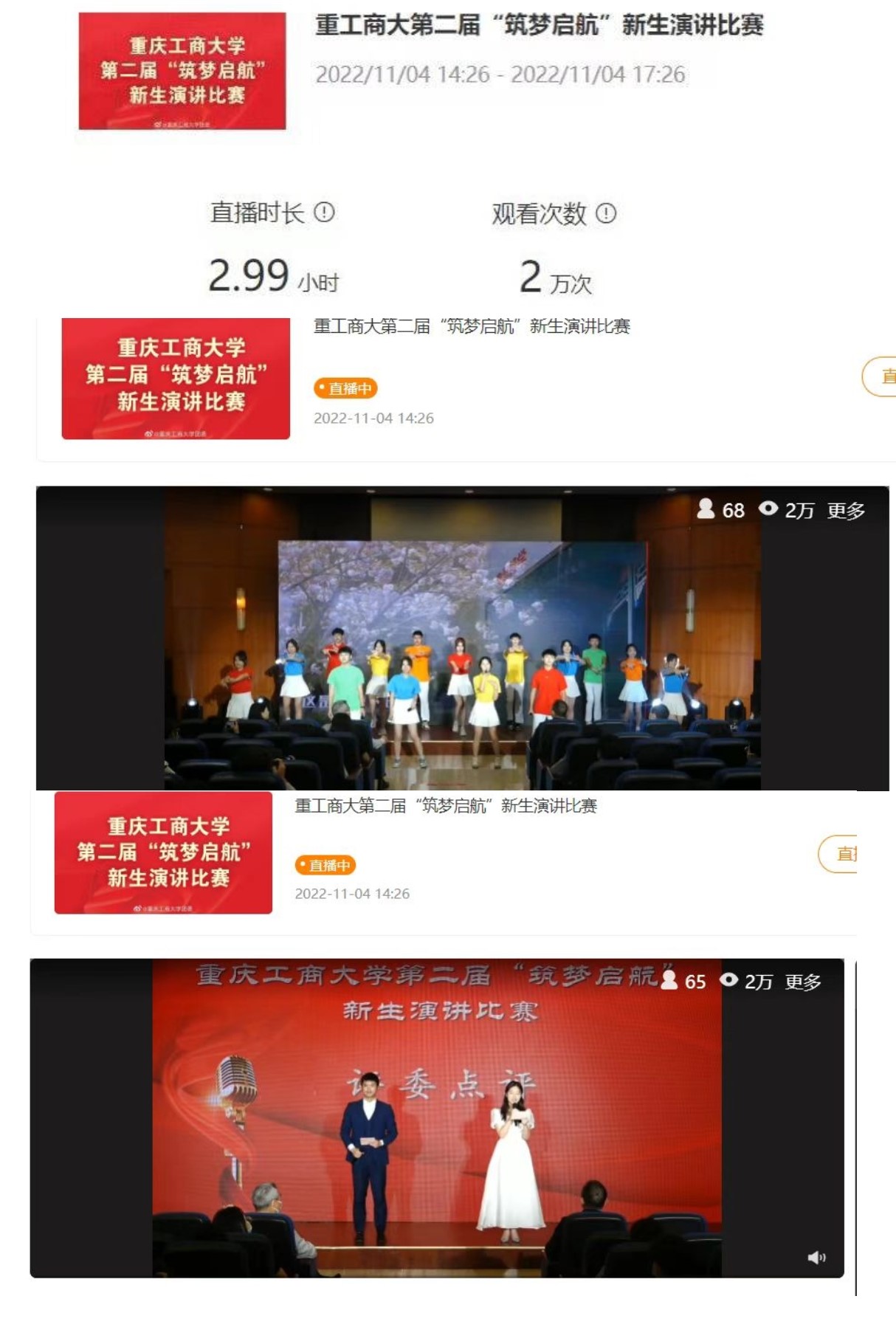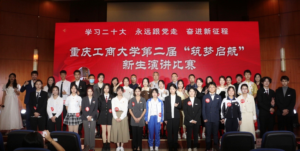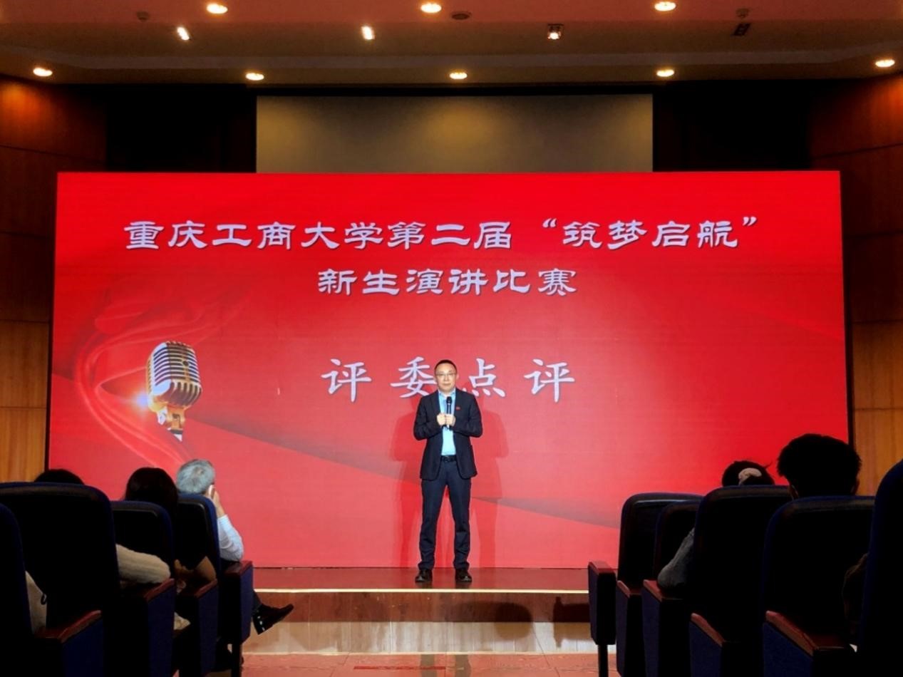 11月4日下午,由党委学工部和校团委主办、通识学院承办的“筑梦启航”新生演讲大赛决赛在江北校区宏智楼B509学术报告厅举行。比赛邀请学校党委常委、党委宣传部部长华杰,党委学生工作部副部长张朝毅,教务处副处长韦晓兰,校团委副书记胡婧婷,江北校区管委会副主任傅晓燕担任评委。学校党委常委、副校长李国军、通识学院(江北校区管委会)班子成员以及师生代表观看了比赛。此次决赛于“重庆工商大学团委”微博进行同步直播,线上观看直播2万人次。