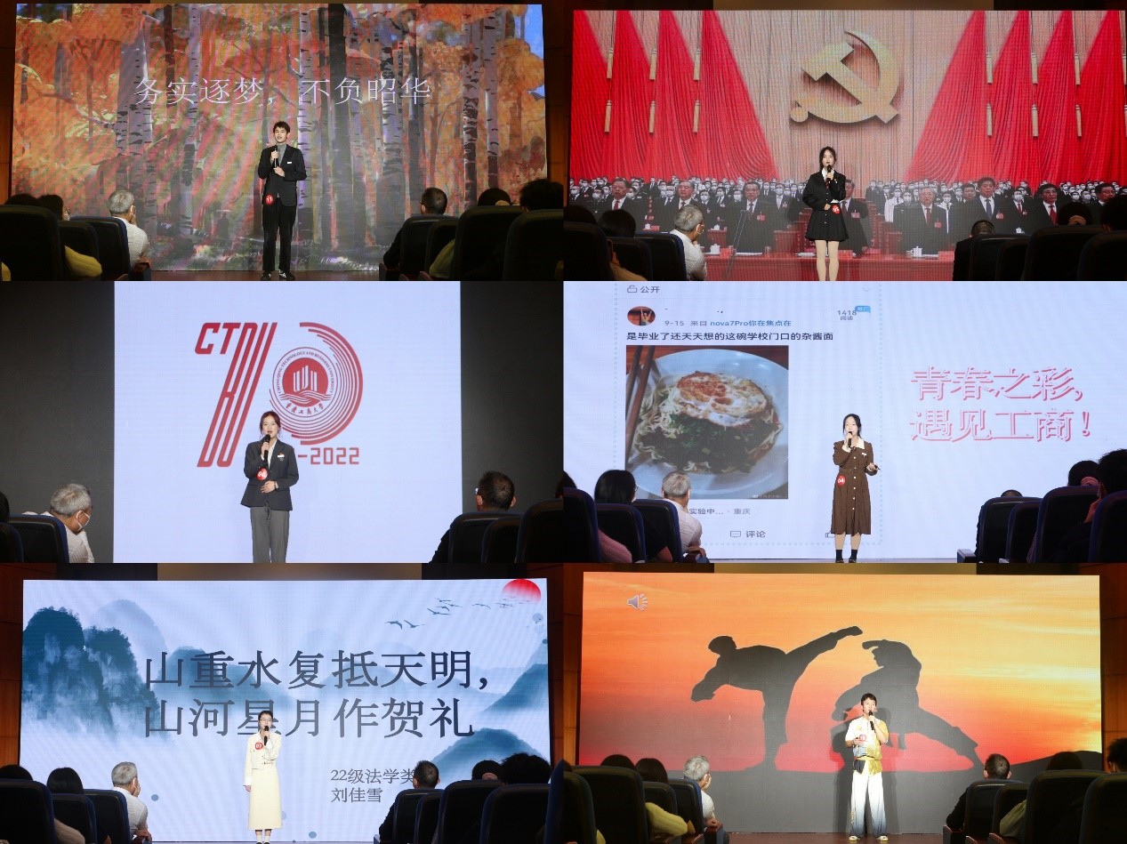 此次新生演讲比赛正值学习党的二十大精神热潮与建校七十周年校庆之际,学校上下高度重视本次比赛,在初赛做到了2022级新生全覆盖,每一名新生都对自己的大学生活做了一次深入的思考,都得到了一次展示自我的机会。经过积极踊跃的班级初赛、各显神通的学院院内选拔赛竞争,各学院最终推选出26名优秀同学冲进决赛。选手们声情并茂、文采飞扬,紧扣“七秩春秋,梦启新程”的演讲主题,以饱满的热情,昂扬的姿态回顾党百年历程的非凡成就、伟大变革,回望重庆工商大学七十载的砥砺前行、赓续奋进,并结合入学前对大学的憧憬、入学后的感受和思考等方面展开演讲,充分展现了为时代发展贡献青春智慧和力量的决心和勇气。比赛过程中穿插了来自通识学院博雅艺术团的歌舞表演,使得现场精彩纷呈。