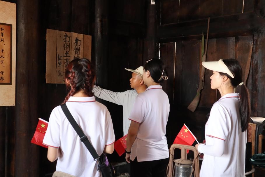 綦江是中央红军长征时唯一经过重庆的进驻地,团队成员以红军在綦江安稳的驻扎地红一军团二团指挥部旧址为起点,参观了旧址中红军一团转战綦江的组织序列表、纪律歌、纪念画以及当时老百姓自发为红军绘制的形象画,身临其境地体会了红一军团二团在羊角侦察敌情、宣传红军政策等重点场景,深入了解到当年红军转战綦江的艰辛历史。简朴的陈设彰显了红军艰苦的生活条件,严肃的口号凸显着红军坚定的理想信念,工整的纪律歌体现了红军顽强的革命意志。革命先辈留下的红色记忆,革命先辈创造的光辉历史不仅是取之不尽的精神财富,更是催人奋进的战斗力量,激励引导新时代青年自觉铭记革命历史、弘扬红色文化、传承长征精神。