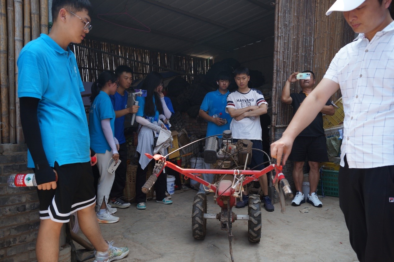上午10点,实践团一行乘坐渡轮抵达大中村,在村当地党群活动中心与党总支副书记廖俊沅会面。随后,在书记的带领下,实践团队到达村当地一所农户家中,对村民日常耕作使用机械进行调研。实践团深入了解农民需求、购机补贴和使用维修等实际情况,从成本和功效两方面综合考虑,帮助农户制定更加科学和高性价比的农机维修和农机改良方案,以进一步提高农业生产效率,促进农机技术的创新和发展,推动农业现代化进程。