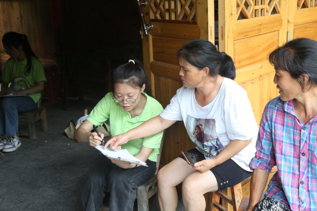 实践团成员通过走村入户,深入实地勘察、寻访,摸清村庄现状,了解民生民意。对当地的水文情况、植被景观、古建筑、院落格局等进行了实地勘察询问,并画出了简单的布局图。同时,还深入大寨村村民生活,入户访谈,收集民声民意,了解村民对乡村发展的获得感。在走访中,实践团成员有幸体验了传统非遗文化—土家织锦和打金钱杆,了解到了大寨花灯、舞龙狮等传统节日活动。村支书杨小芳介绍到:“近年来大寨村道路、公共基础设施越来越完善,但是村里缺乏就业机会,很难留住年轻人,大寨村近年来在不断探索村落的发展之路,古村落的保护性开发是恒定不变的主题。”