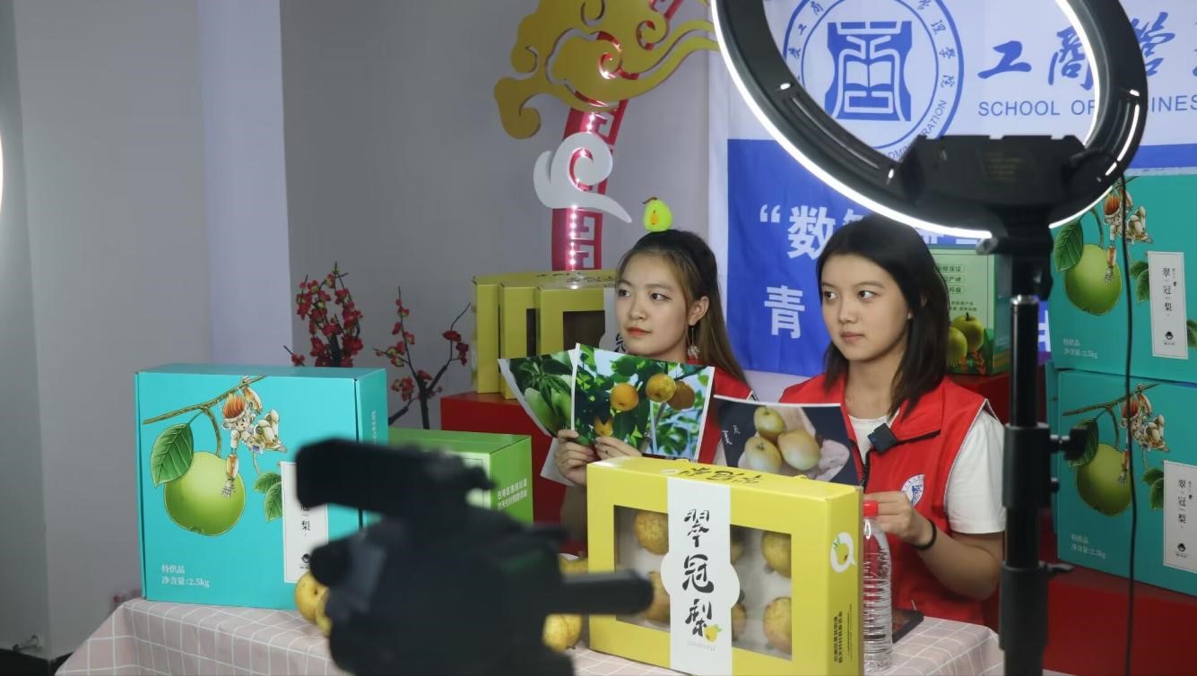 数字赋能,兴业助农。智囊团利用电商平台对当地的翠冠梨进行宣传,运用线上直播的形式将该水果的旗号推广出去,通过介绍惠民街道的来历、翠冠梨的功效、不同款式的产品吸引观众,在直播间展示吃梨,用最细腻的方式向观众传达翠冠梨的口感和色泽,并与村民一起统计下单情况。