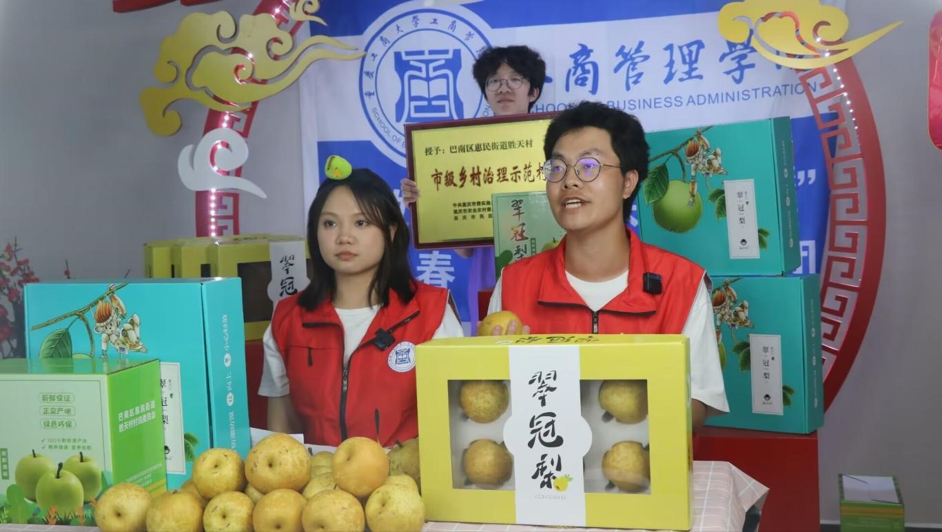 为深入实施“数商兴农”和“互联网+”农产品出村进城工程,7月10日下午,工商管理学院“数字赋能,兴业助农”青春实践智囊团师生在重庆市巴南区惠民街道胜天村,通过电商平台对当地特色水果进行宣传,以实际行动帮助果农销售翠冠梨,助力乡村振兴。