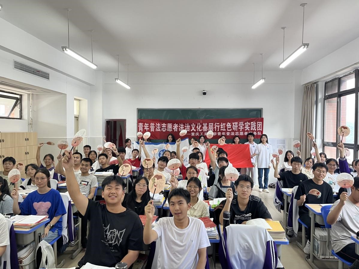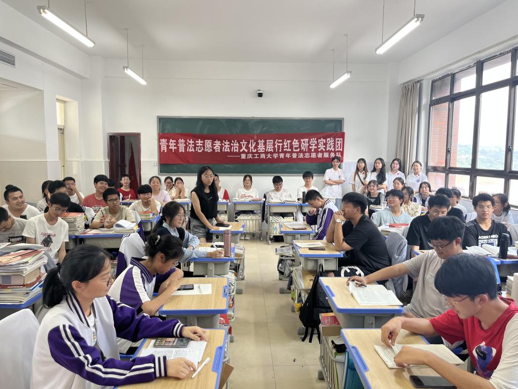7月11日,法学与社会学学院青年普法志愿者法治文化基层行红色研学实践团成员走进忠县忠州中学高二(28)班,通过讲故事和知识竞答的方式,将中国共产党的由来娓娓道来,介绍了中国共产党在创建时期、大革命时期、土地革命时期、抗日战争时期、解放战争时期、社会主义建设时期以及改革开放时期各阶段标志性事件,向高中生们充分展示我党百年奋斗的伟大历程和重大成就,让同学对中国共产党有了更全面、系统地了解,增强少年群体对党和国家的认同感和自豪感。
