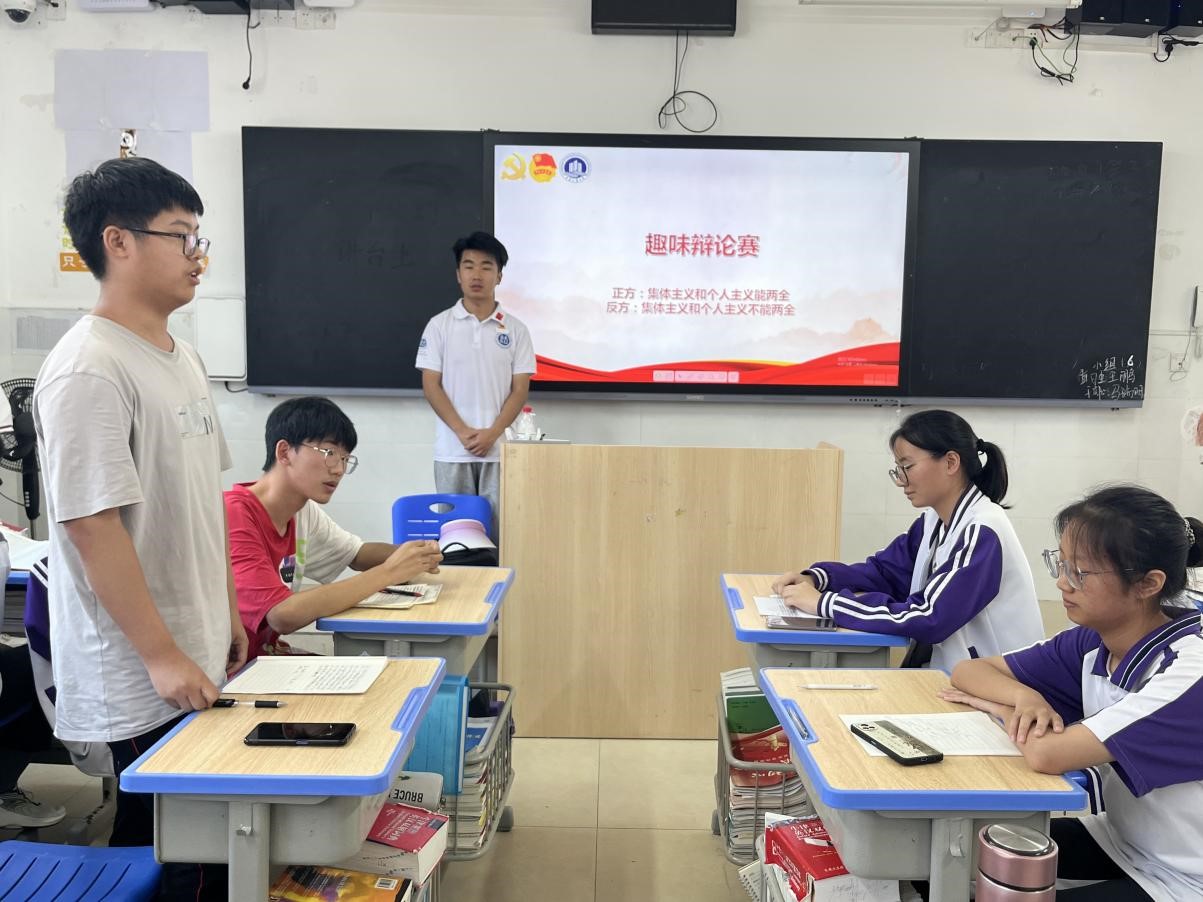 在中国共产党百年奋斗历程中,无数革命先烈和爱国的仁人志士为争取民族独立、人民解放抛头颅、洒热血。为了让同学们对“集体主义”观念有更加深入的思考,大学生志愿者们组织开展了以“集体主义和个人主义能否两全”为辩题的趣味辩论赛。比赛过程中,双方辩手各抒己见、思路严谨,为大家带来了一场精彩绝伦的辩论。比赛结束,大学生们总结并评价了本次辩论赛,传授了一些辩论中的小技巧,希望辩手们进入大学阶段以后能够在辩论场上有所进步。在场的同学纷纷发表自己关于集体主义的观点和看法,大学生和中学生们展开了热烈的讨论。
