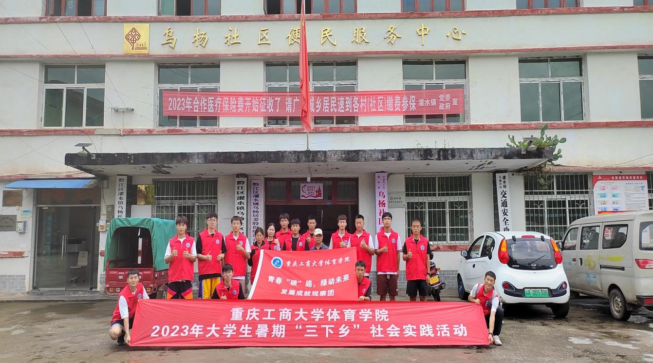 7月10日,体育学院发展成就观察团前往重庆市黔江区濯水镇开展暑期“三下乡”社会实践活动。此次活动以“勇当‘碳’路先锋,共创绿动未来”为主题,采用实践调研形式,走进乌杨社区探寻绿色发展之路。