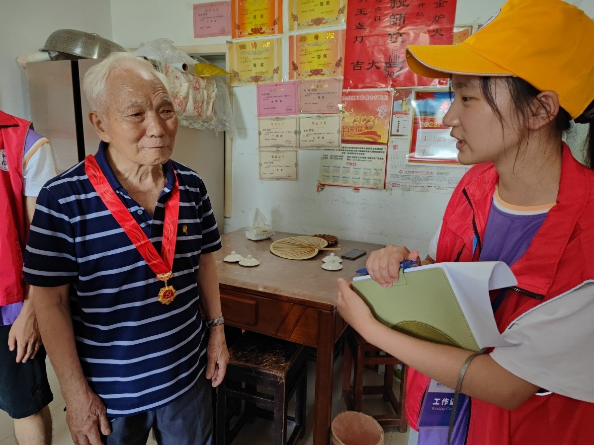 红日当空照,青春正当红。一百年以来,无数革命先烈前仆后继,才构建了现当下我们眼前的华彩篇章。为献礼二十大,传承红色基因,7月11日,工商管理学院“向阳而生,奔‘涪’青春”晨曦理论宣讲团来到重庆市涪陵区蔺市街道梨香社区,在社区负责人冉琳同志的带领下,到老党员陈林祥家中拜访。