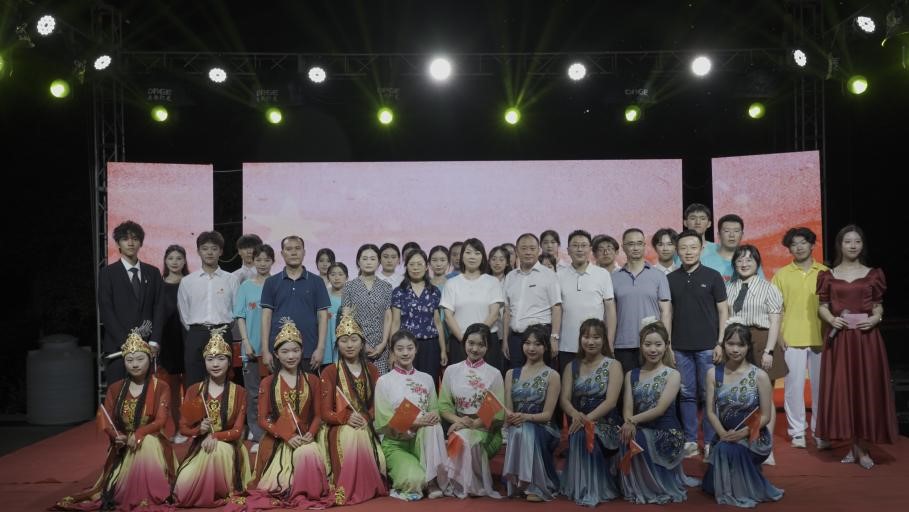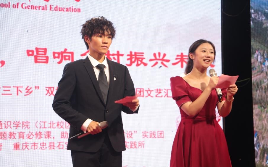 搭建乡村大舞台,巧奏振兴交响乐,7月16日晚,通识学院“修好‘主题教育’必修课,助力双城经济圈建设”研学团走进重庆市忠县石宝镇新政村,开展“舞动成渝青春风采,唱响乡村振兴未来”主题文艺汇演。忠县县委宣传部、县文联负责人,石宝镇党委书记胡素萍等镇领导,新政村驻村工作队、村委,我校江北校区管委会副主任、市纪委监委帮扶集团驻石宝镇新政村原驻村第一书记兼工作队队长赵雄、通识学院专职组织员宫彪、通识学院综合办、学工办、分团委负责人以及研学团全体成员与当地村民们齐聚一堂以乡村大舞台为依托,助力双城经济圈建设。