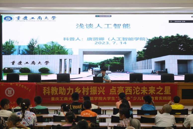 为贯彻落实习近平总书记在党的二十大报告中关于科技是第一生产力的重要讲话精神,加强乡村科学知识普及宣传,7月14日,人工智能学院暑期大学生“三下乡”乡村振兴促进团赴石柱县西沱镇开展了“科教助力乡村振兴,点亮西沱未来之星”科普宣讲和教学活动。