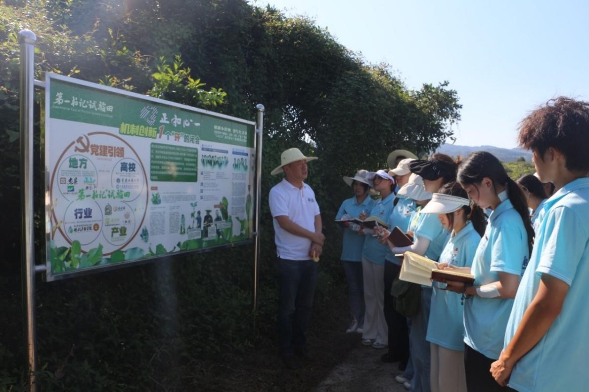 当天下午,赵雄带领实践团成员观察田间农作物,耐心讲解项目的基本情况和发展前景。他讲到,新政村“第一书记+试验田”项目是一个设想,一次尝试,是地方、高校、行业、产业聚力的一种成功。从最开始只为带领村民脱贫致富,到现在改变食品行业格局,这是不断进步的过程。这也是振兴带富产业,促进成渝双城经济圈建设的新探索。