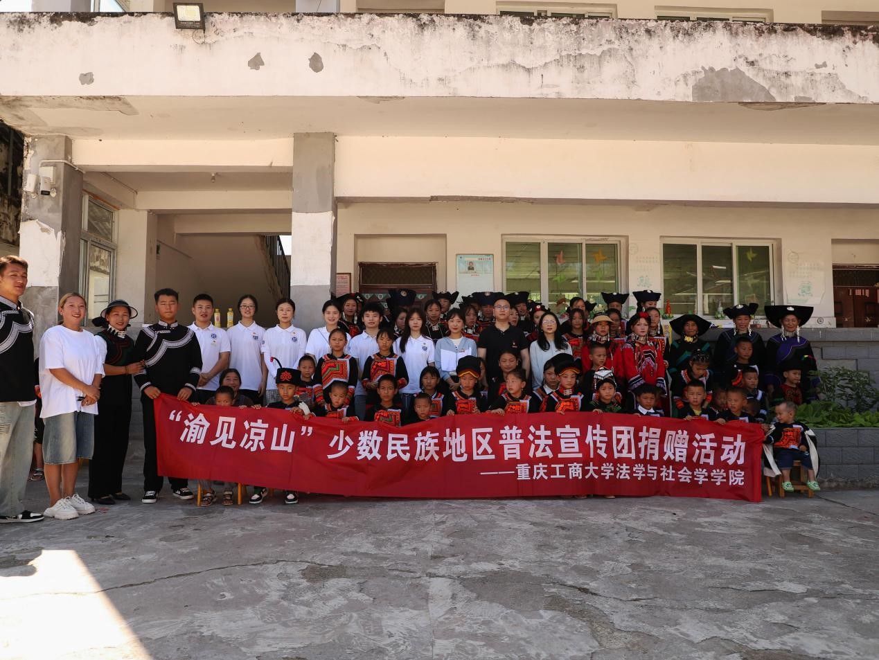 法学与社会学学院党委联合重庆中朵律师事务所共同为光辉村捐赠急救医疗包、常备药品、图书文具等物资。捐赠仪式由光辉村村支书吉洛衣罗组织,普法团彝族成员苏永鹏担任语言翻译。村民吉洛毕力表示,能够见到来自重庆工商大学的师生普法团全村村民都非常激动,感谢老师们、同学们能与我们心贴心地真诚交流对话,语言的隔阂虽然存在,但绝不能够成为我们之间深厚情感的阻碍。捐赠仪式结束后,普法团成员与村民手拉手共同跳起彝族特色达体舞,唱响民族团结之歌。