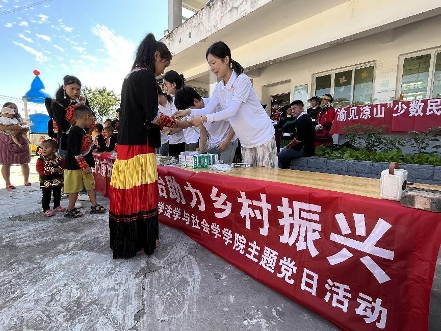 为深入学习贯彻党的二十大精神,以法治之力促进民族团结进步工作,全面推进主题教育不断取得新成效,法学与社会学学院党委组建“渝见凉山”少数民族地区普法宣传团,于7月22日深入四川省凉山彝族自治州雷波县西宁镇光辉村开展普法主题党日活动。宣传团由教工一支部党员白玉、向往,研究生一支部宣传委员何祖润指导,学生一支部7名法学专业本科生党员构成。