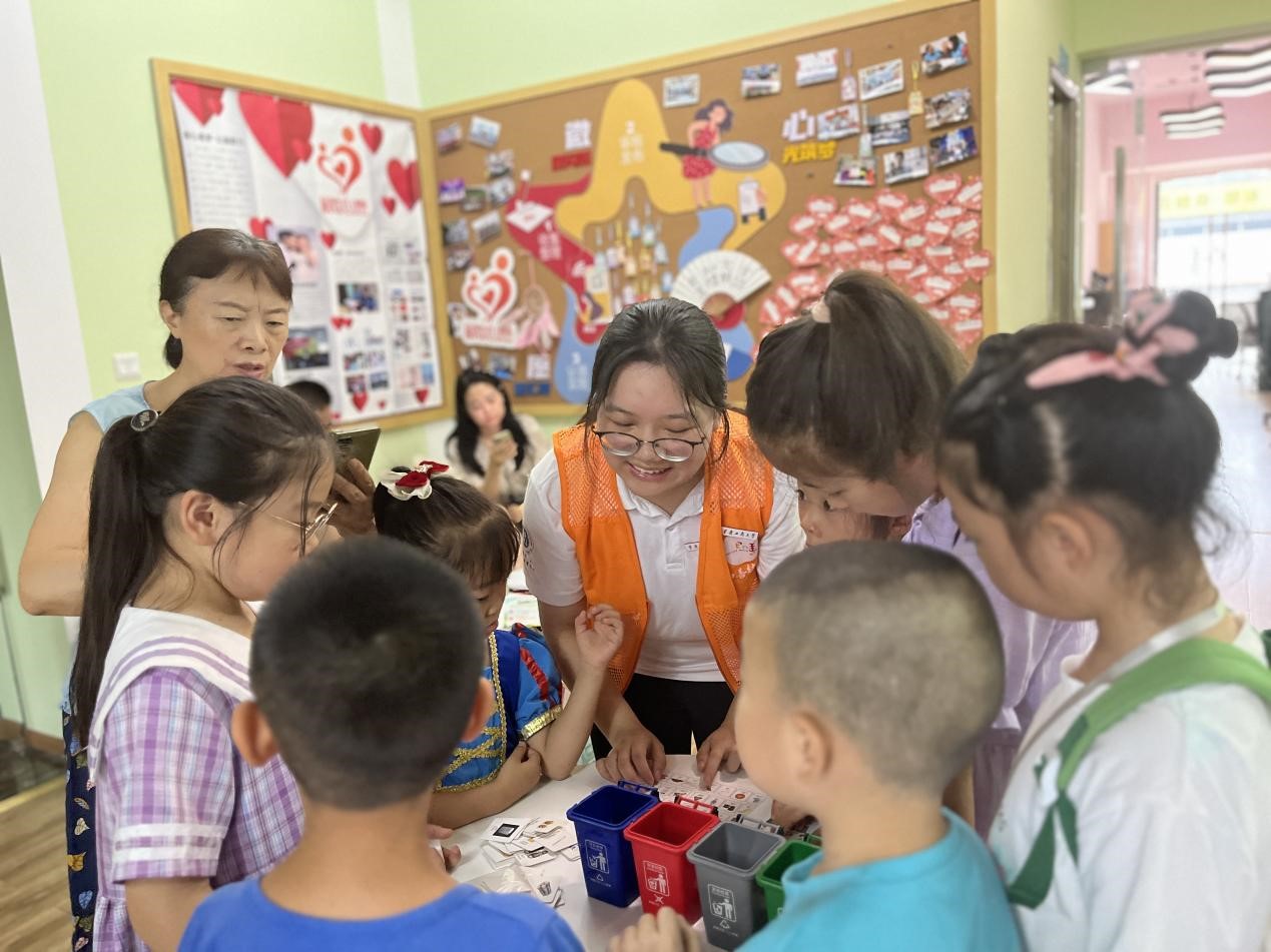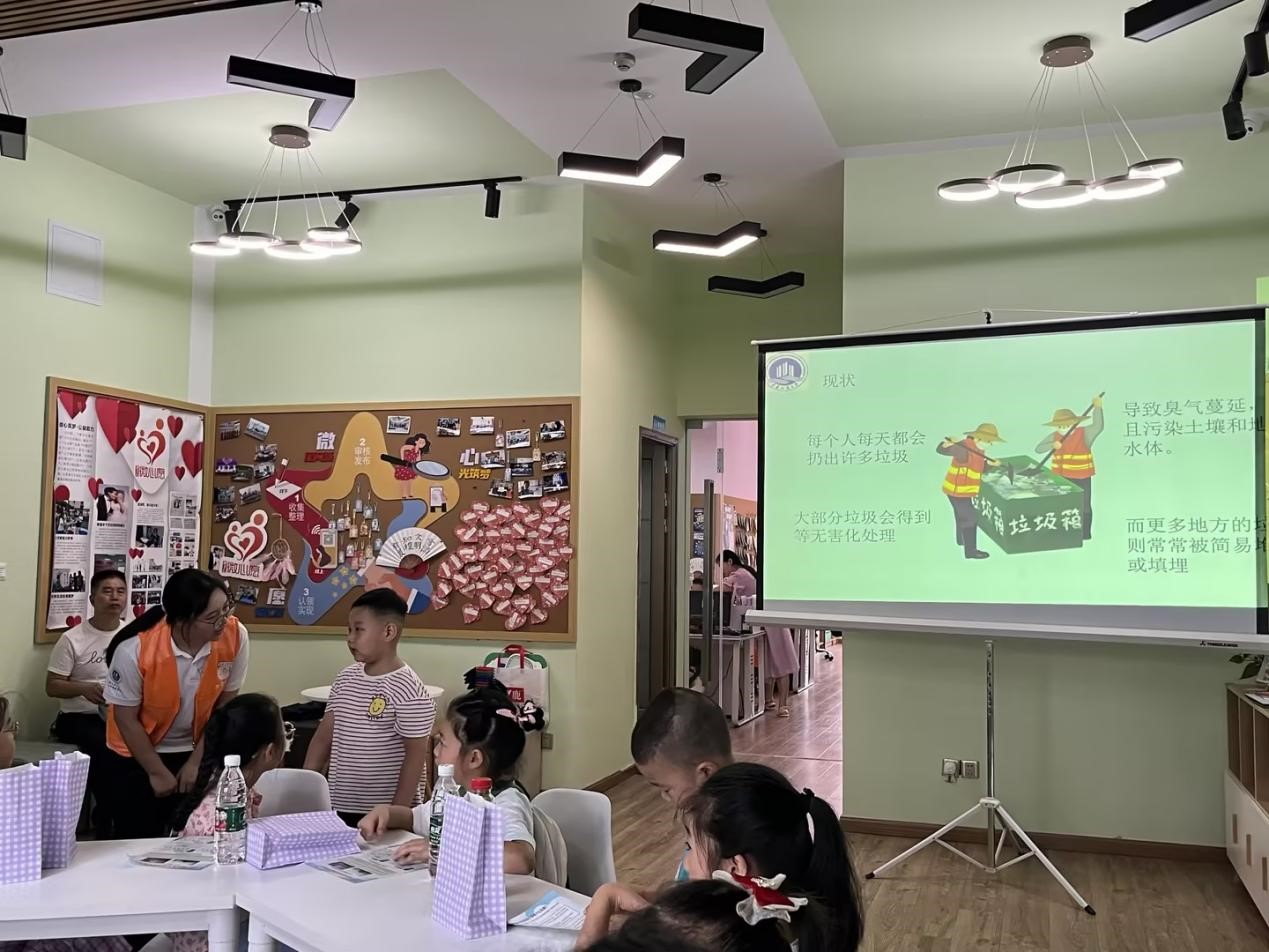 在“环保有你,绿色同行”活动中,大学生志愿者为参加活动的家庭讲解垃圾分类的相关知识,通过知识竞答的方式加深小朋友们对垃圾分类的理解,通过模拟垃圾分类的小游戏,锻炼小朋友们的动手能力和思维能力,提升他们的环保意识,培养良好的环保习惯。