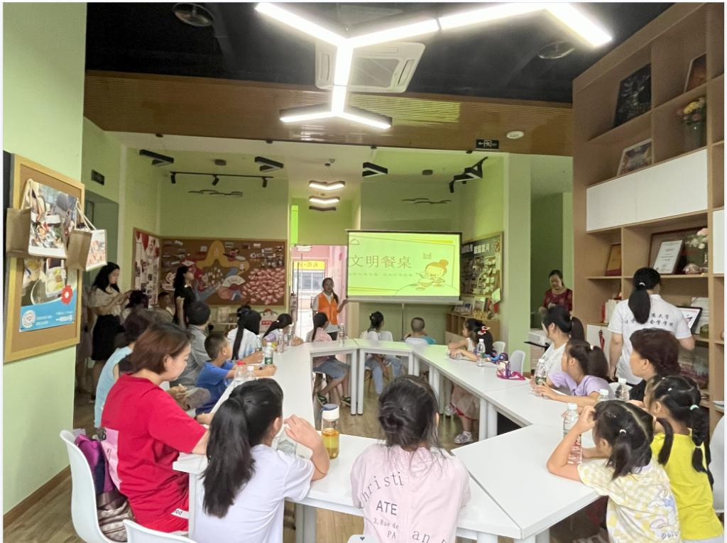 在“绿色生活,文明餐桌”活动中,志愿者们邀请15组亲子家庭一起学习就餐礼仪童谣,引导小朋友们从文明细节做起,规范言行,崇尚礼仪,遵守秩序,营造健康文明的用餐氛围,培养个人排队就餐、文明就餐、节约就餐的良好行为习惯,通过教授七步洗手法,开展知识竞答游戏等方式,让绿色生活、文明餐桌的理念扎根心中。