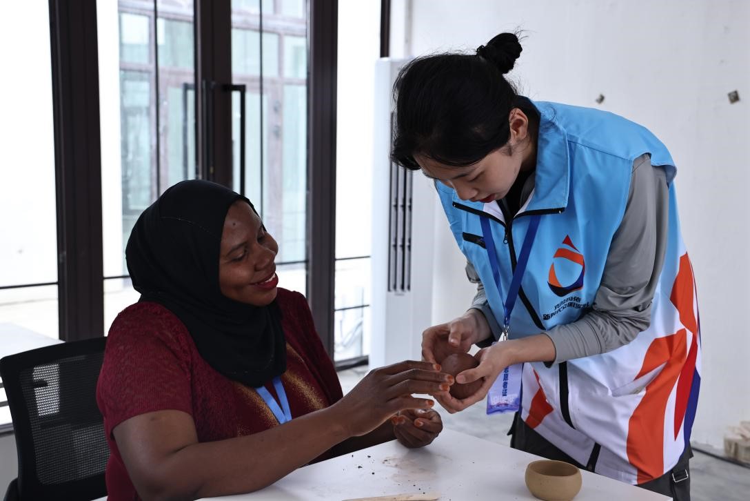 “紫砂制作不仅需要技术,还需要耐心、专心、细心,真的很治愈。”来自埃塞俄比亚的网络达人努比亚认真地跟着实践团成员们学习紫砂制作时感叹道。参会嘉宾们表示他们在本次活动中收获良多,亲手制作的紫砂作品成为他们了解学习中国紫砂文化的珍贵纪念,并对实践团成员辛勤工作表示赞美。