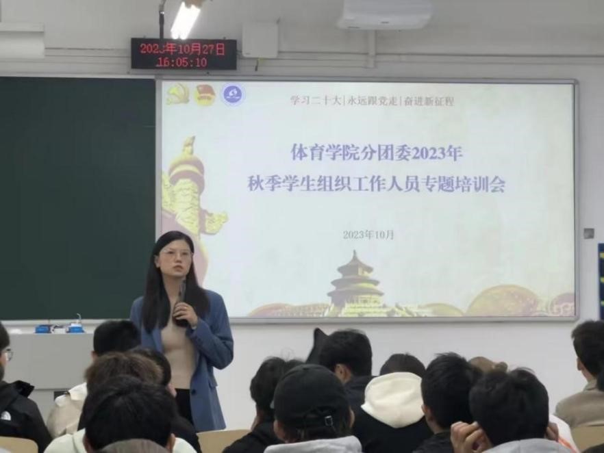 为深入学习贯彻党的二十大精神和团的十九大精神,深刻领会习近平总书记关于青年工作的重要思想,明确新学期团属学生组织工作方向,持续提升团学组织服务师生水平,10月27日,体育学院分团委在南岸校区博智楼07204召开2023年秋季学生组织骨干成员专题培训会,分团委书记傅杨出席培训会并提出工作要求,学生会全体成员、青年志愿者协会及各学生社团等学生组织负责人参加培训会议。会议由学生会主席团成员张高源同学主持。