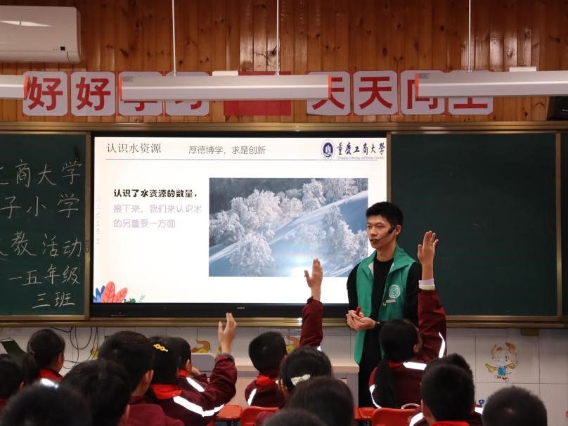 活动准备阶段,为保证课堂质量和活动效果,通识学院“蒲公英”青年志愿者服务队前后组织三轮面试,在全院范围内选拔出一批综合能力突出的支教志愿者。活动当天,支教志愿者们在不同年级的六个班级同时开展特色创意课程。23工管类一班王明轩、23物流二班谢思成从基本乐理知识开始,开展歌曲《虫儿飞》教学,稚嫩的童声唱出对音乐的喜爱;23财政类四班黄雨馨充分发挥剪纸的艺术魅力,引导小学生们充分发挥想象力进行剪纸创作,传承中国传统文化和传统工艺技法;23财政类一班何宇杰和周继缘用静电小实验引发小学生们对生活的思考,科普科技小常识,激发科技创新思维;23金融类六班李庆丰、23金融类八班刘云勋为小学生们讲解自然界形态多变的水,宣传保护生态环境的重要意义,实现保护水资源的育人目的;23工管类(财会)七班易世萱、23金融类十班蒋欣怡运用实际案例进行网络安全教育,提升小学生们识别真假、辨别是非的能力。活动最后,志愿者同小学生们合影留念,用一张张照片记录下美好瞬间。