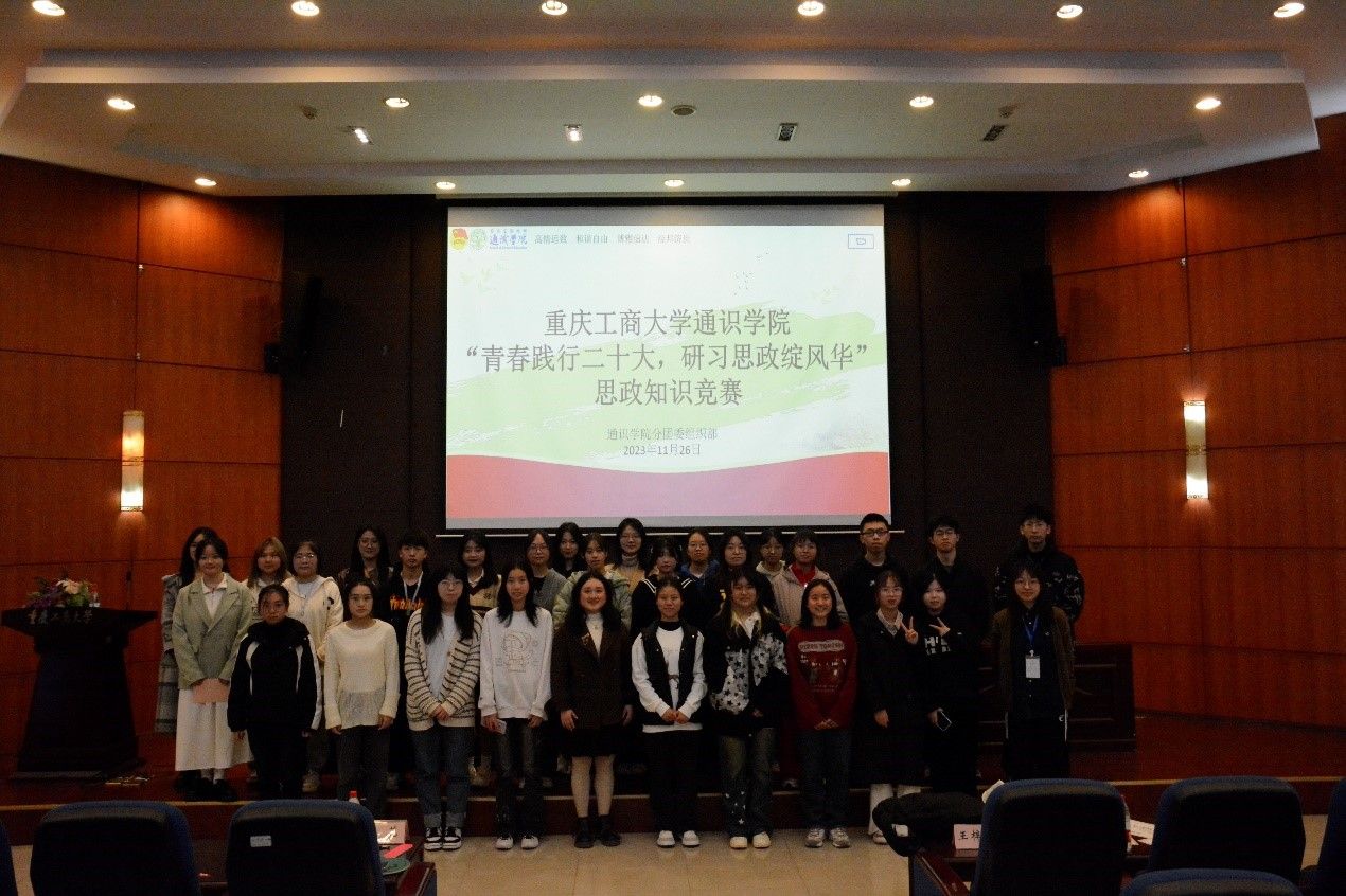 为深入学习贯彻党的二十大精神,11月26日下午,由通识学院举办的“青春践行二十大,研学思政绽风华”思政知识竞赛在江北校区宏智楼B509学术报告厅举行。通识学院分团委指导老师梅艺、分团委学生干部代表出席本次比赛。
