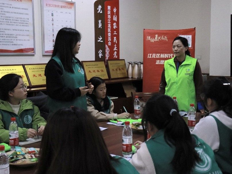 2023年12月5日是第38个国际志愿者日。为弘扬奉献、友爱、互助、进步的志愿服务精神,提高青年志愿者的志愿服务素养,呼吁更多青年志愿者投入到环保公益中来,12月5日,江北区生态环境局、江北区新时代文明实践卫生环保总队、我校通识学院“蒲公英”青年志愿者服务队在江北区观音桥街道养老服务中心渝馨家园联合开展“国际志愿者日”志愿者知识培训及环保项目宣传活动,渝馨家园工作人员周碎燕、吴锐老师,以及20名我校通识学院“蒲公英”青年志愿者参与本次活动。