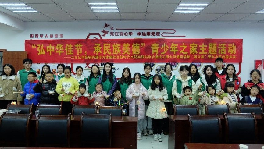 为传承中华优秀传统文化,促进少年儿童深入了解中国传统节日,提高少年儿童的动手实践能力,激发其对传统文化的兴趣,12月10日,我校通识学院“蒲公英”青年志愿者服务队联合体育学院“新叶”青年志愿者服务队在江北区华新街街道东方家园社区青少年之家开展“弘中华佳节,承民族美德”志愿服务活动。