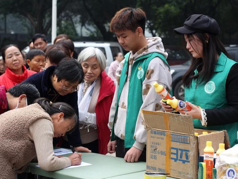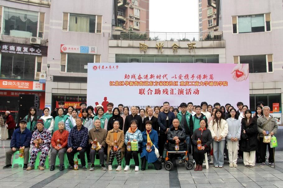 随后节目表演正式开始。舞蹈《流光叙》展现奋力前行的青春之姿;小合唱《圆梦》唱出青年人逐梦飞翔的动人旋律;竹笛独奏《牧民新歌》奏出大草原上生机勃勃的美丽风光;舞蹈《唱支山歌给党听》表达新时代青年赓续红色血脉的使命担当;合唱《灯火里的中国》唱出生生不息的华夏之光;朗诵《以你为镜》呐喊出青年人献身祖国发展的铮铮誓言;舞蹈《青苹果乐园》带来一片片欢声笑语;手语舞《一路生花》表达生命旅途中会不断绽放充满希望的美丽花朵;合唱《长亭外》唱出此次汇演接近尾声的依依不舍。此外,汇演期间还穿插了知识竞答环节,社区居民们参与热情高涨,场面热闹非凡。表演最后,我校通识学院“蒲公英”青年志愿者服务队的志愿者们为前来观看汇演的残障人士送上了慰问品,并集体合影留念。