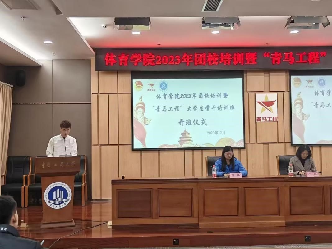 12月11日,体育学院2023年团校培训暨“青马工程”培训班开班仪式在南岸校区新图书馆一会议室举行。体育学院党总支书记王静、党总支副书记张薇薇、分团委书记傅杨出席开班仪式,分团委学生会、党员服务站、青年志愿者协会等学生骨干参加本次培训。开班仪式由学院分团委学生副书记唐毅主持。