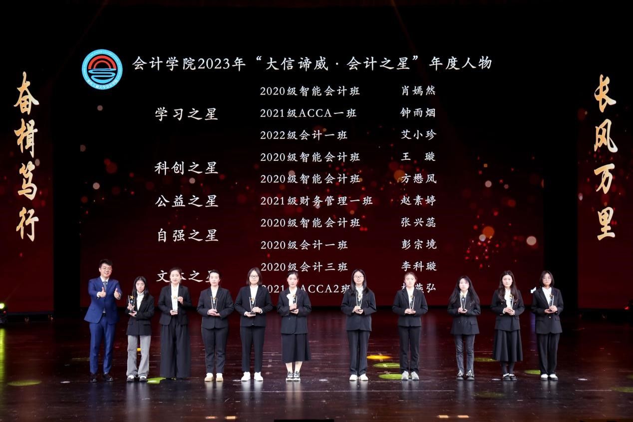 会计学院2023年师生风采展暨颁奖典礼的圆满结束,展现了师生们用智慧与激情取得的丰硕成果。同时,典礼树立了良好榜样,传递了正向能量,充分调动奋发向上、刻苦求知的积极性,形成了朝气蓬勃的精神风貌,助力培养具有时代精神的会院人才,为走好全面建设社会主义现代化国家的新征程添砖加瓦!