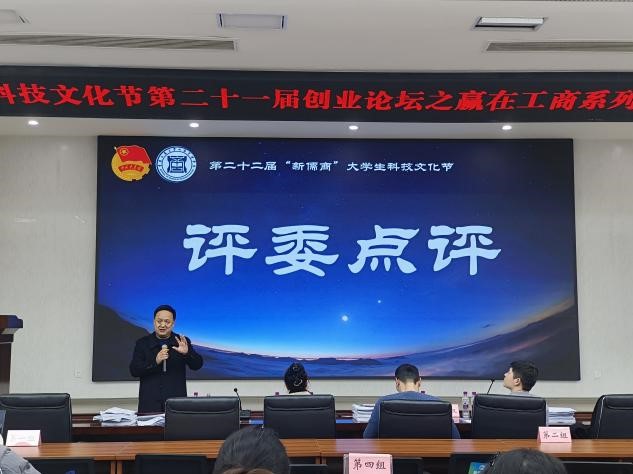 为深入学习贯彻党的二十大精神,落实创新驱动发展战略,激发青年学生创新创业潜能,培养有创新意识、创业能力和创新精神的青年人才,12月8日下午,我校二十二届“新儒商”大学生科技文化节之第二十一届创业论坛——“赢在工商”创新创业挑战赛于明德楼3019会议室举行。本次活动由校团委主办,工商管理学院承办,比赛邀请工商管理学院国际商务系蔡继荣教授、人力资源管理系周莉教授、熊雪原博士及市场营销系王烽权博士担任评委。