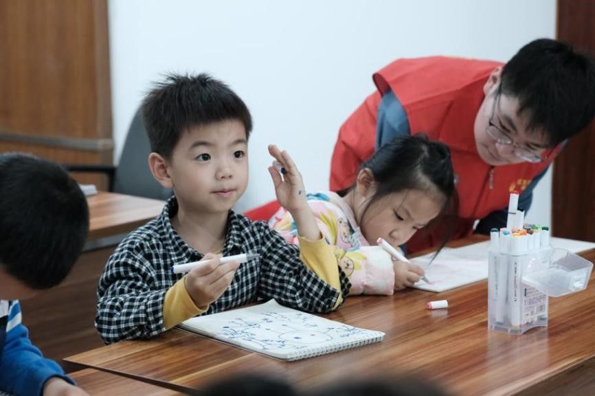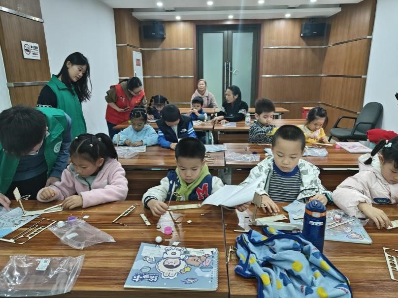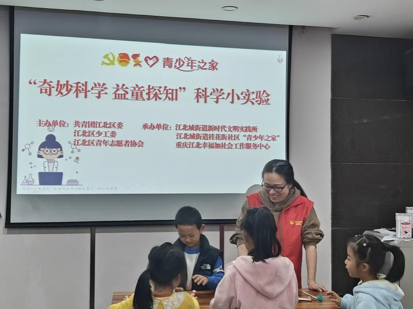 观音桥街道鲤鱼池社区的志愿者带领青少年学习专注力小游戏课,体验传统茶文化,制作水晶贴画、手工——飞机模型;寸滩街道兰溪社区的志愿者和老师一起讲解国学经典、分享国学阅读经历、阅读《江南》等经典著作,在国学中领悟文学魅力,在学习物理知识后共同制作“万花筒”、搭建益智积木,学以致用;华新街街道东方家园社区的志愿者给社区青少年进行心灵辅导,带领青少年进行毒品科普、了解毒品危害,树立抵制毒品的思想,同时一起制作了水膜塑型、天平秤;石马河街道石子山社区的志愿者开展垃圾分类科普小课堂,进行有奖知识问答,并协助青少年动手裁剪精美纸花;大石坝街道石油社区的志愿者协助工作人员讲解手工课理论知识,在手工课实践中帮助青少年解决难题;江北城街道桂花街社区的志愿者带领青少年进行篮球运动相关知识讲解,青少年画出心中的偶像并上台展示,在志愿者的协助下制作了迷你投篮架。