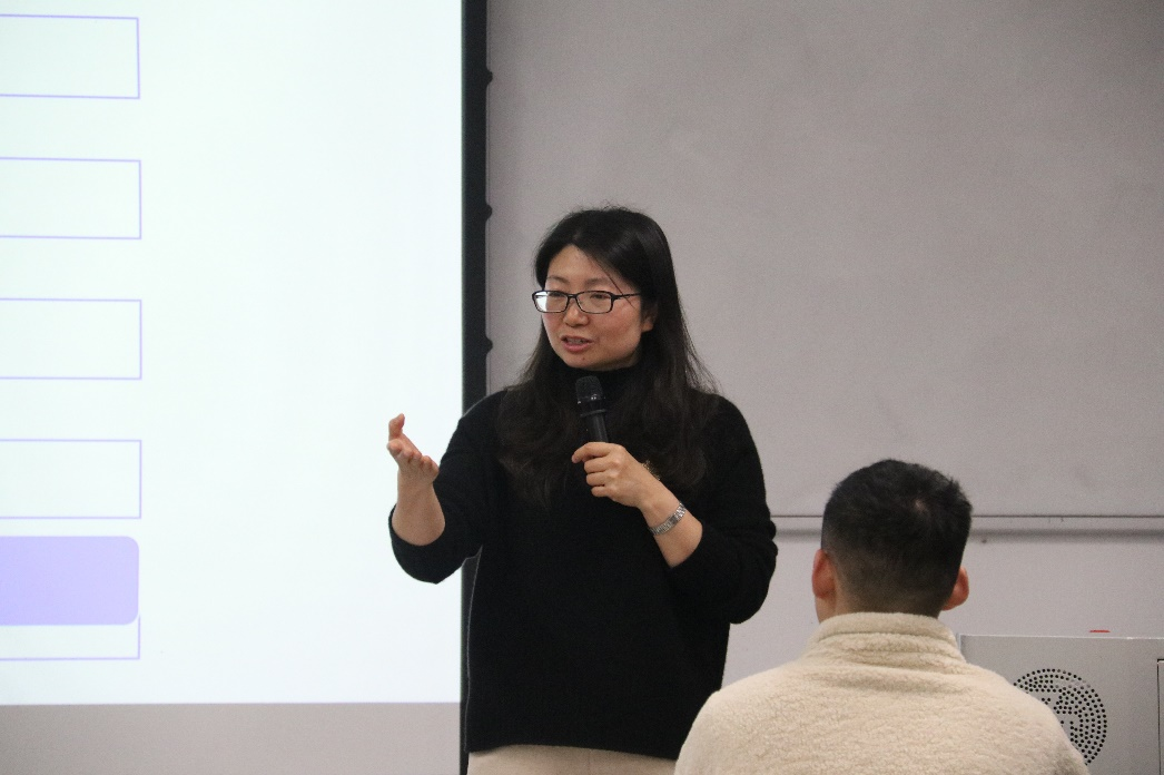 兰桂萍教授从三个方面讲授了如何提高思政课教学的实效性。一是“选题与解题”,她指出这是思政课面临的首要问题。对于选题,要抓住两个关键概念即“绝不创新”和“绝对原创”,以此为前提,坚持内容为王,选择合理的主题进行全面、深入的剖析,从而形成严密且自洽的逻辑体系。二是“理论与案例”,兰桂萍教授通过“人与自然和谐共生”的教学案例向我院师生展现了教学中举例的重要性。要用学术讲道理,增强教师的理论功底;要直面问题讲道理,坚持问题导向;要善于用学术讲道理,在教学中兼具新颖性与学术性。三是“技术与艺术”,思政课的教学离不开课堂的技巧与艺术。在教学中要注意时间的控制、站位与手势的准确、场控的把握、手段的运用、环节的完整度,同时要处理好“展”与“收”、“详”与“略”、“密”与“疏”、“短”与“继”、“深”与“浅”的五大关系。