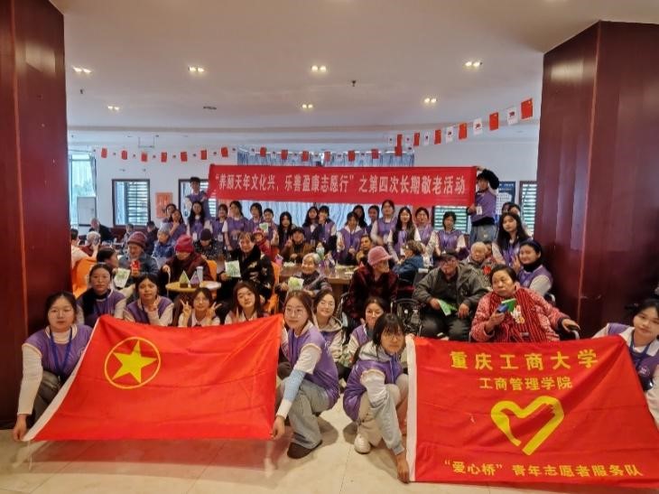 3月17日,工商管理学院分团委第四届“爱心桥”青年志愿者服务队在重庆市江北区北滨路德孝养老院举办以“养颐天年文化兴,乐善盈康志愿行”为主题的第四次长期敬老活动。