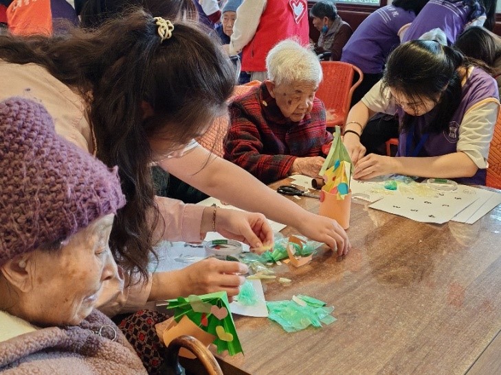 本次活动通过文艺演出、游戏互动和手工等多元化的活动形式展开,将当代环保理念与敬老爱老的中华传统美德相结合。下午两点四十,志愿者们到达活动现场,完成签到、布置活动场地等工作,并仔细搀扶老人们进场。下午三点整,活动正式开始。手语舞《上春山》为文艺演出开了一个好彩头,朗诵节目《写给春天的诗行》带领大家感受到春天的温暖。随后志愿者们和老人们一起玩了游戏“不倒的森林”、“拍拍乐”、“纸杯数字”。通过这些活动不仅让老人们体验到了多彩的文娱生活,提升了老人们的环保意识,宣传了环保理念,也拉近了志愿者们和老人们的关系,让大家的关系变得更加融洽。