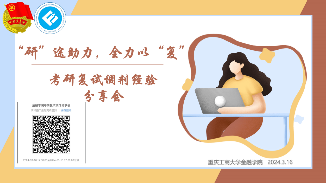 为帮助金融学院考研学子进一步理清复试和调剂的备战思路,有效应对即将到来的研究生招生线上复试,增强复试备考信心,3月16日下午,金融学院“‘研’途助力,全力以‘复’”考研复试调剂经验分享会在腾讯会议举办。金融学院学工办主任、分团委书记兰丽娟老师参与活动。本次分享会邀请到考研上岸的优秀学子李亮、吴嘉递、王宛蓉和贾晓燕进行分享。
