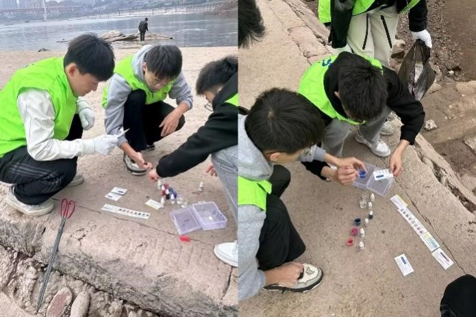 同时,“河小青”志愿者们对长江水进行现场取样,在河边取水并现场进行了各项水质检测,检测结果均显示水质正常。在“河小青”们的共同努力下清理了海棠溪烟雨公园河流沿岸的垃圾,使河流沿岸面貌焕然一新。