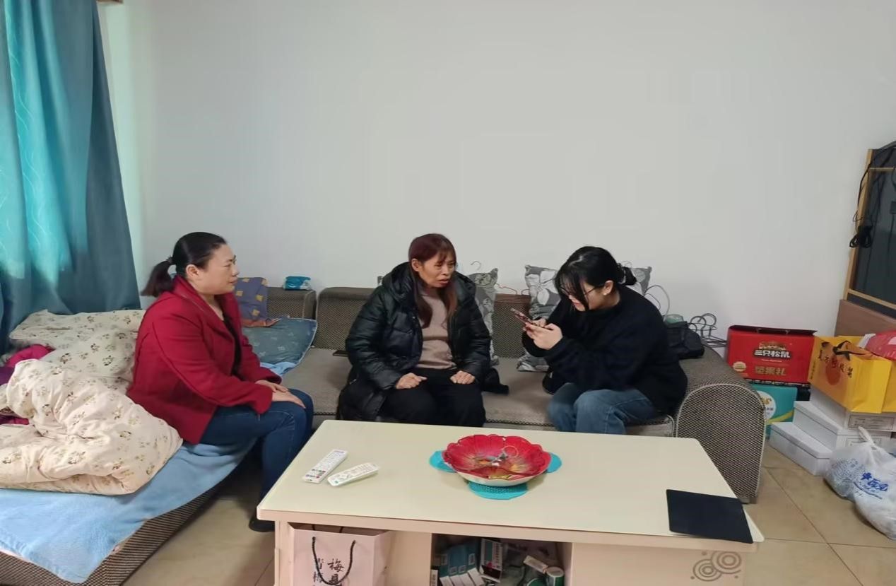 图为志愿者在低保家庭进行问卷调研