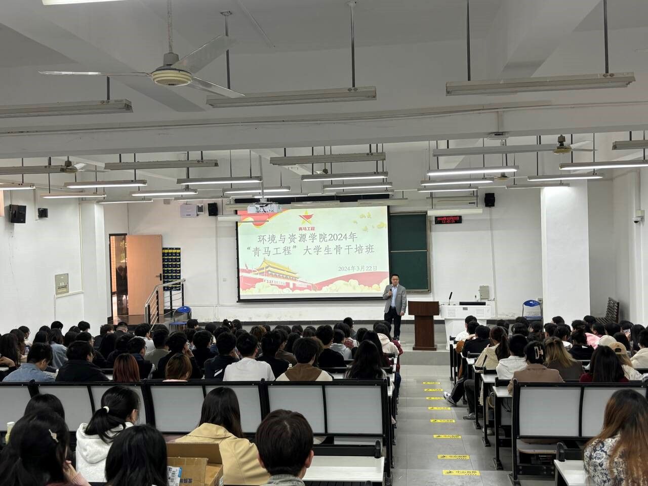 为深入学习贯彻党的二十大精神,扎实推动青年马克思主义者培养工程深入实施,提高青年学生的理论素养、研究能力和实践水平。3月22日,学院在明智楼110001教室举办2024年“青马工程”大学生骨干培训班开班仪式暨第一讲。第一讲邀请学院党委书记陈龙国担任主讲人,副书记张颖、分团委负责人王南妮老师及200余名团学骨干参会。