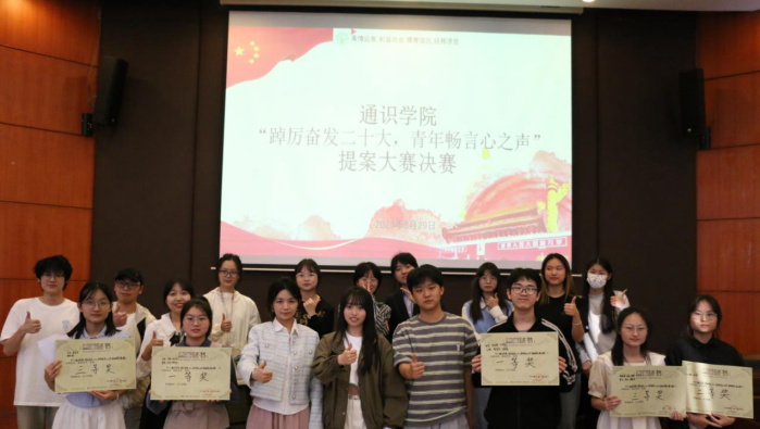 为深入学习贯彻习近平总书记关于青年工作系列重要指示,加强学生与学校的联系,为学校发展积极建言献策,3月29日,通识学院“踔厉奋发二十大,青年畅言心之声”校园提案大赛决赛在江北校区宏智楼B509学术报告厅顺利举行。