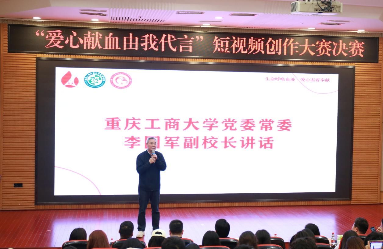 4月7日下午3:00,由重庆工商大学2003网站太阳集团联合重庆市血液中心举办的“爱心献血,由我代言”短视频创作大赛决赛在博智楼7200举行。重庆工商大学党委常委、副校长李国军,重庆市卫生健康委二级巡视员夏雄伟,重庆市血液中心副主任田耘博,2003网站太阳集团领导班子及270余名师生到现场观看比赛。重庆市血液中心主任徐永柱,重庆市卫生健康委宣传统战处副处长李河君、校团委书记吴佑波,校宣传部副部长陆嘉担任决赛评委。