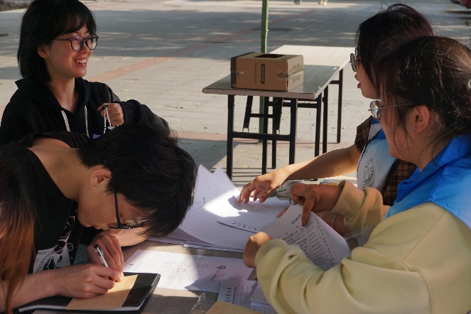 活动中,志愿者详细地向同学讲解活动规则。同学们或写下书信,感谢曾默默帮助自己的人;或记录身边的雷锋故事,勉励自己多行善事;或在信封上写下自己的志愿计划,在生活中时刻提醒自己。每位同学仔细思考,认真书写。信件一笔一画流露真情,表达他们的善意和感恩。志愿者真诚对待每一封信件,并将它们妥善保管。信件会在一年后送至参与者的手上,激励他们行远自迩,笃行不怠。