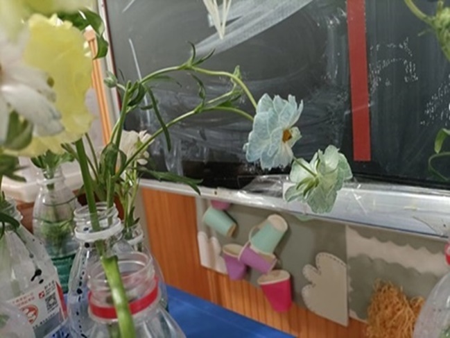 活动主要通过“花朵吸水”实验,让孩子们观察花朵色彩奇妙变化的同时,还能了解到背后的科学原理——毛细现象。活动开始前,志愿者播放“变色花实验”视频,让小朋友熟悉实验步骤,并强调实验过程中的安全注意事项。活动过程中,志愿者遵循科学研究步骤“提出假设、实验验证、得出结论”,先让其猜测花朵是怎么吸水的以及吸水后的颜色,再通过实验完成任务,最后观察变化、得出最终结论,步步引导鼓励,建立科学论证思维。实验结束后,志愿者为小朋友们细心解释实验原理,解决他们的困惑,共同探讨毛细作用在自然界和生活中的其他例子,如纸、毛巾是如何吸收水分等。