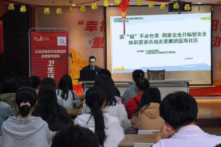活动开始前,志愿者们提前来到活动现场,协助现场工作人员布置宣讲场地。活动开始后,宣讲人员从辐射安全角度出发,通过讲解身边发生的具体事例,为周边社区居民和全体志愿者进行了相关知识科普,引导大家树立正确的辐射安全观。在问答环节,志愿者们踊跃提问,宣讲人员耐心解答大家提出的问题。活动最后,参与活动的志愿者和现场工作人员们合影留念。