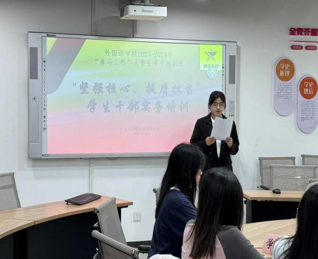为响应国家关于青年马克思主义者培养工程的建设工作,为党培养信仰坚定、能力突出、素质优良、作风过硬的学生骨干,4月23日,外国语学院2023-2024学年“青马工程”大学生骨干培训在南岸校区涵智楼1217会议室顺利举行。外国语学院党委副书记吴欢欢为本期培训主讲嘉宾,外国语学院分团委学生会、党员服务站全体骨干、各班团支书参加了本次培训会。